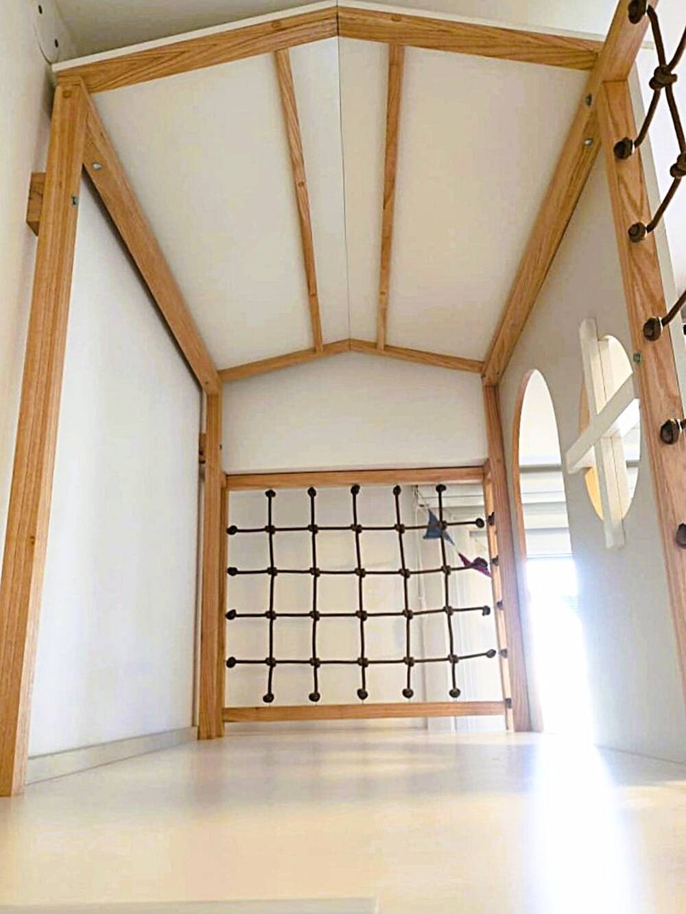 El entrepiso se convierte en el corazón del dormitorio, un rincón elevado que invita a imaginar y crear mundos mágicos. Abajo, la cama acompaña con comodidad y calidez, haciendo de este espacio un lugar tan práctico como especial.
