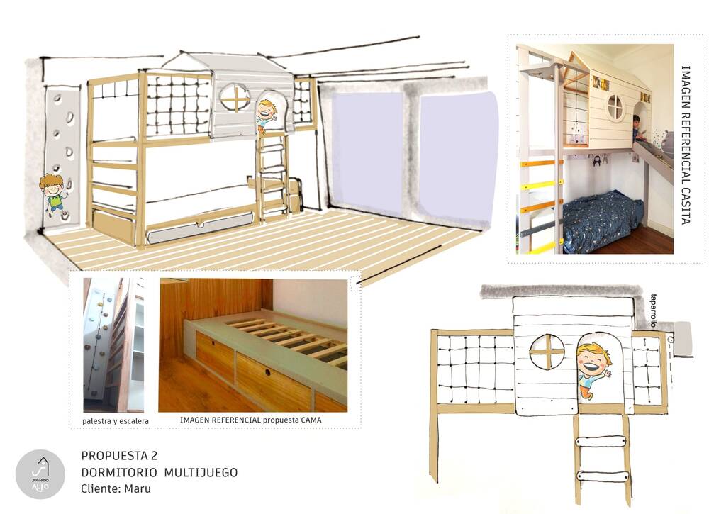 Todos los dormitorios y áreas de juego, se realizan de manera personalizada, en base a las necesidades y requerimientos de cada cliente. El precio publicado, incluye la instalación en el lugar. No incluye el flete de traslado, se calcula el valor desde nuestro taller en La Matanza, Provincia de Buenos Aires, hasta el domicilio de instalación.