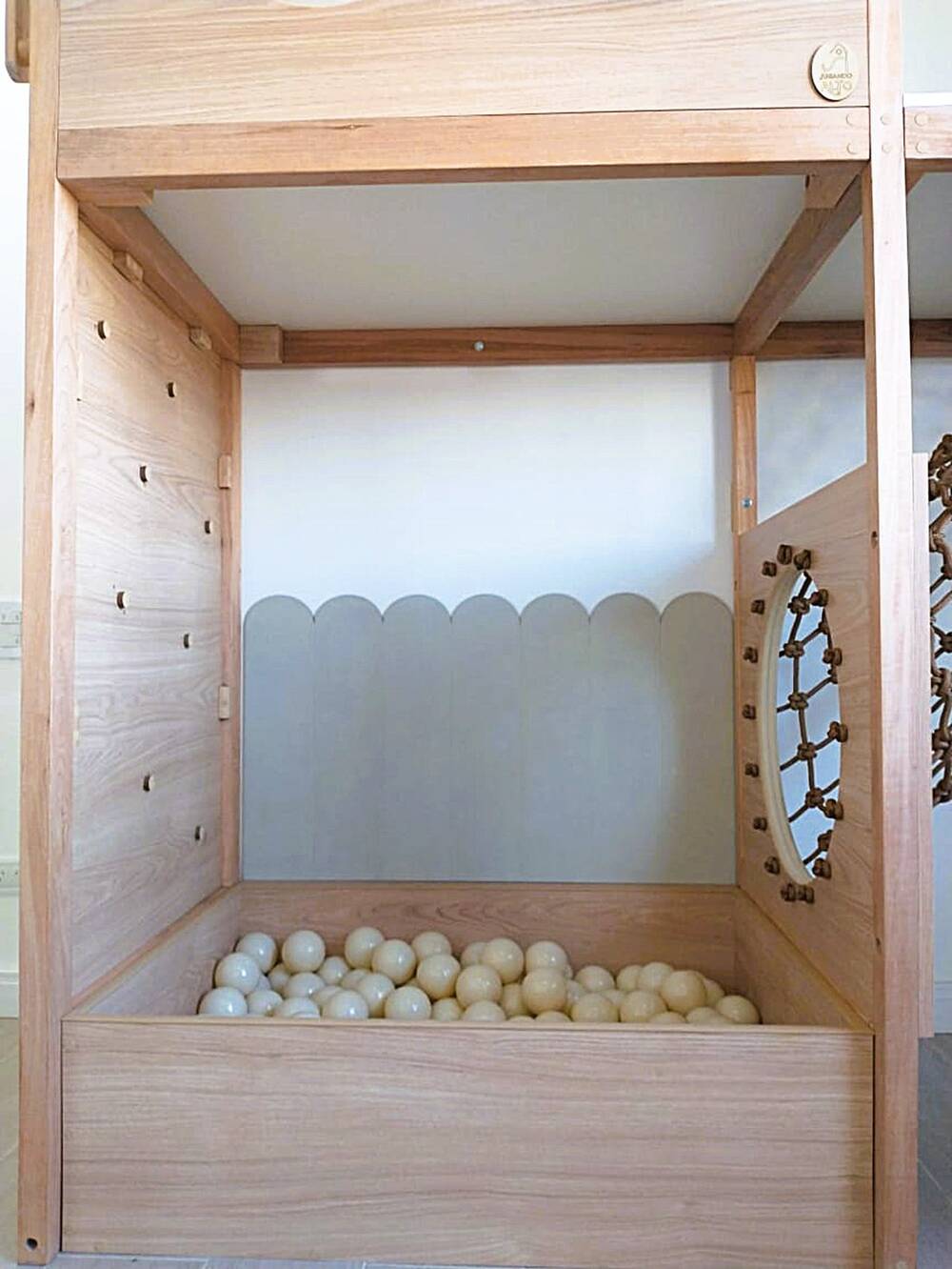 Con este espacio de aventuras, la diversión está garantizada y sin límites. Cuenta con mini pelotero, palestra para trepar, una red de escalada para llegar a la cima y una hamaca para volar tan alto como la imaginación.