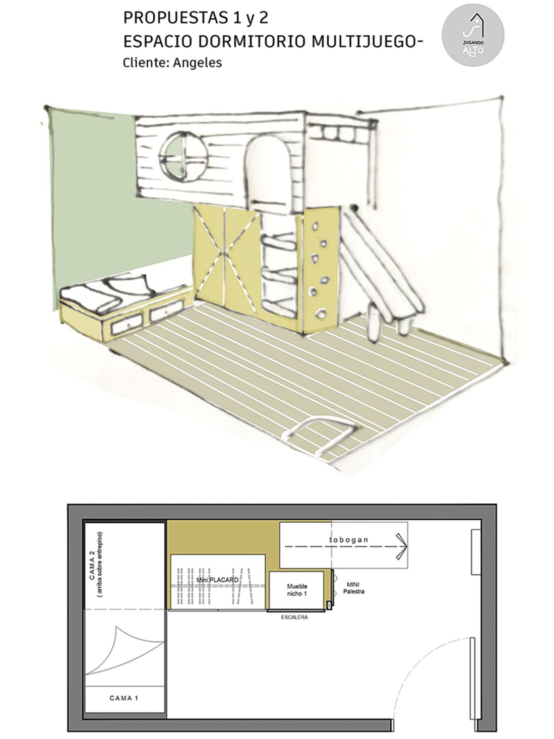 Este entrepiso multijuego fue creado para dos hermanas: arriba, un refugio mágico que también puede convertirse en cama; abajo, la cama principal que acompaña cada noche.