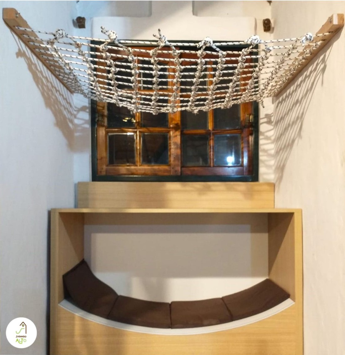 El recorrido se completa con una red colgante y un rincón de lectura para relajarse después de tanta acción. Un espacio que combina aventura, creatividad y descanso… ¡todo bajo el mismo techo!