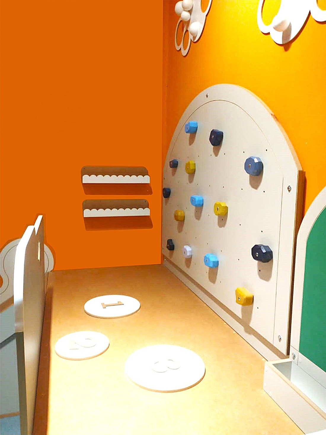 El desafío empieza en la Palestra y el Trepador, invitándolos a subir a las nubes. La recompensa es un emocionante descenso por el Tobogán. Un área de destreza con anillas, tobogán y pasamanos, para su agilidad y fuerza.
