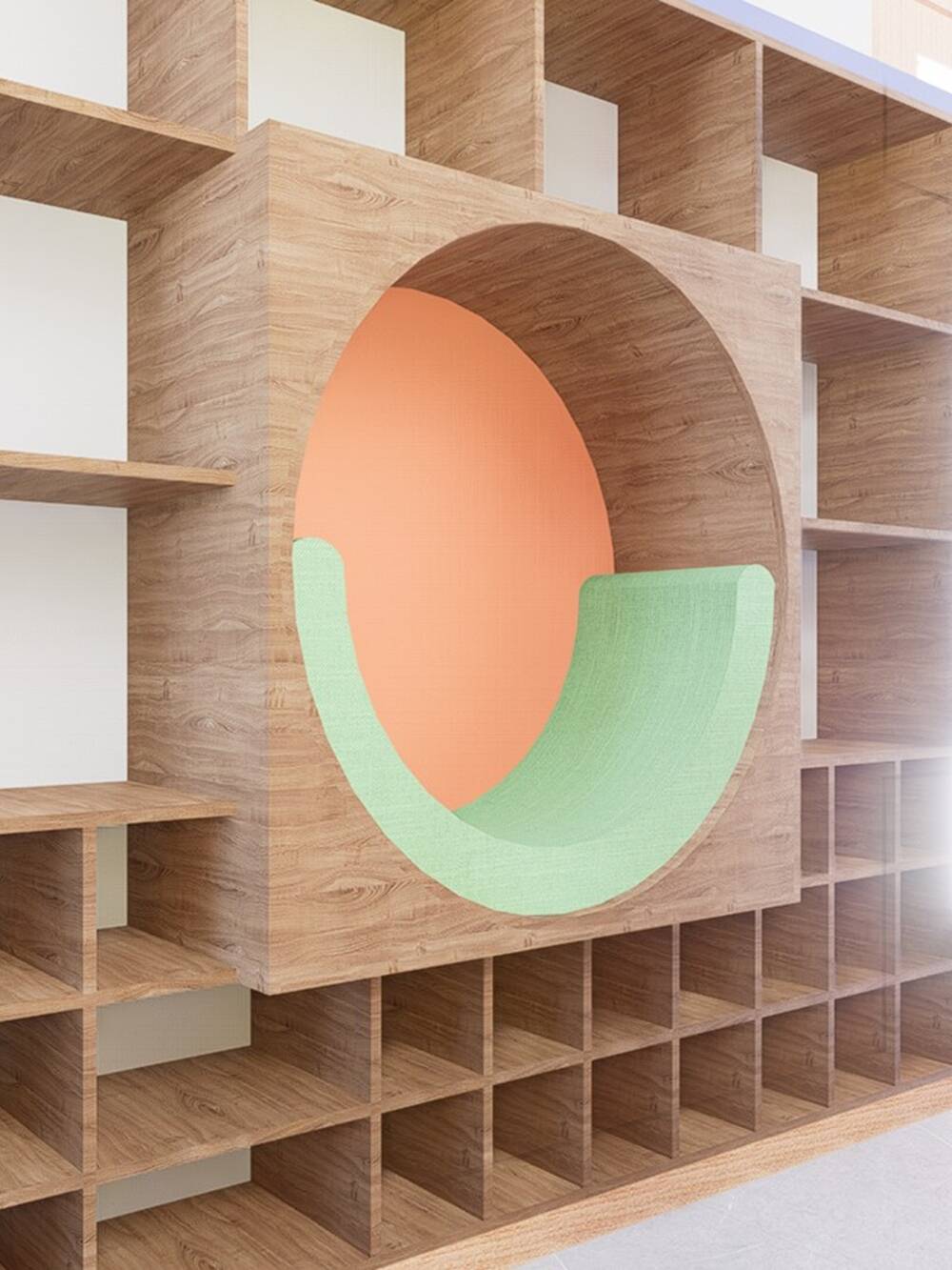 . Mueble frontal zapatero y nichos con juguetes